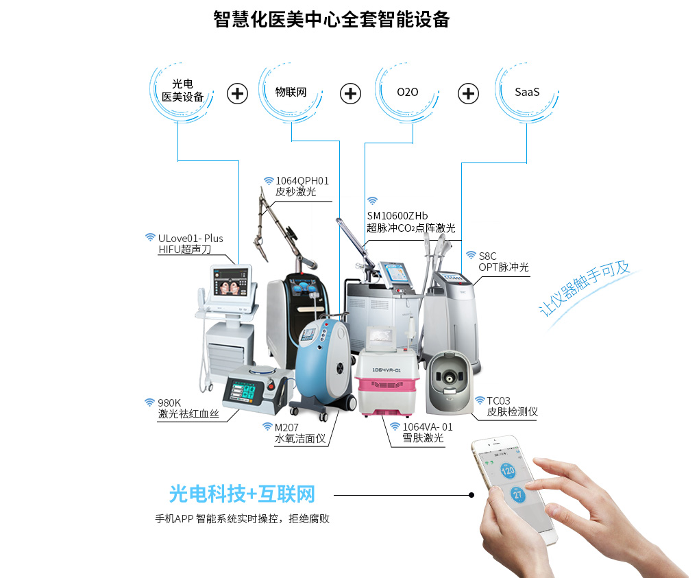 產業互聯網是美業重生的歷史機遇,也是千載難逢的機遇,所有美業有識之士應全力以赴地去鑄就這個產業互聯網平臺。我們將打造一個美業的產業互聯網平臺。智慧化醫美中心,結合科學儀器智慧進行系統美膚管理,多科室、多機種聯合美膚方案,從內到外還原肌膚亮麗健康本色。